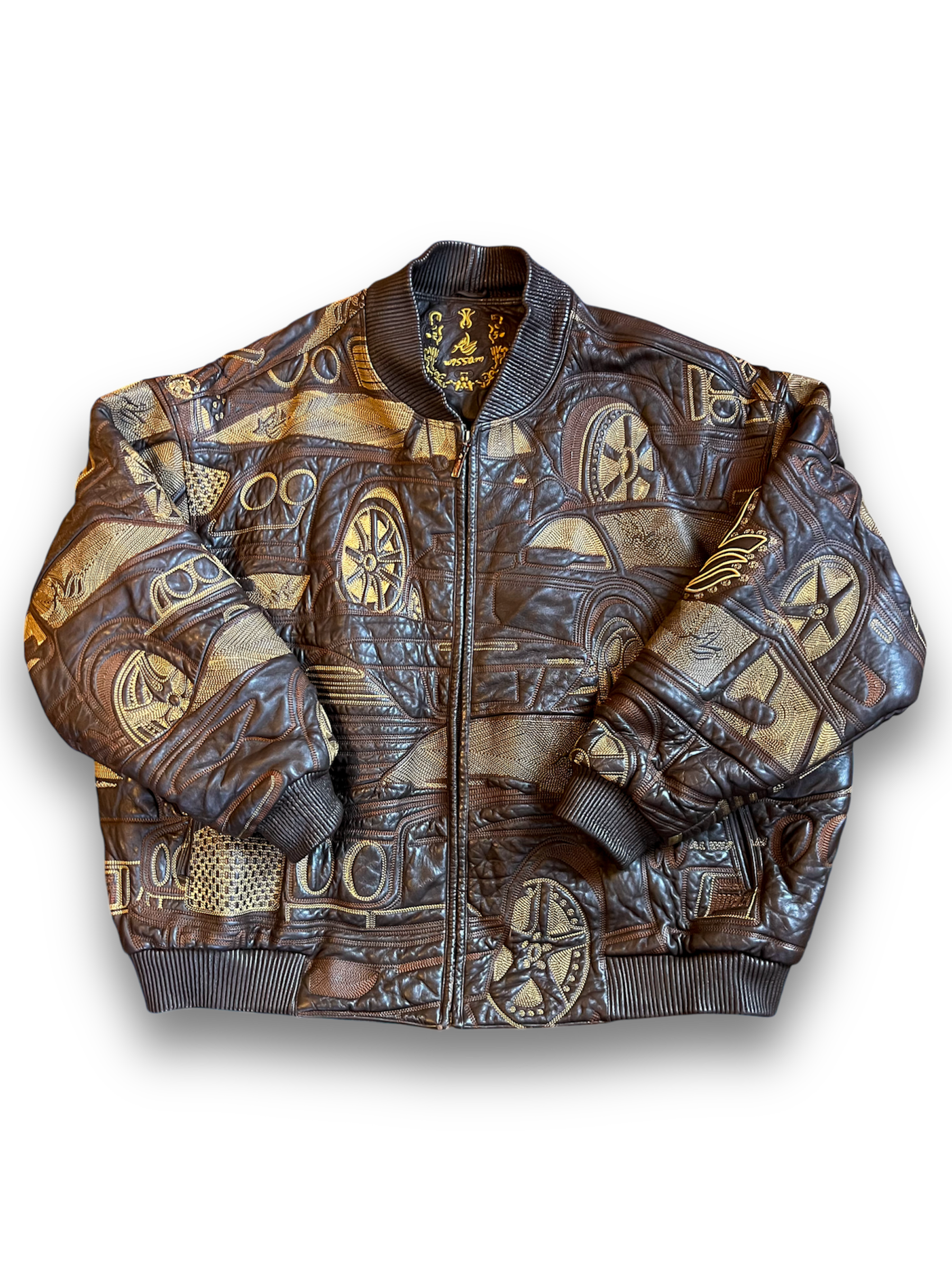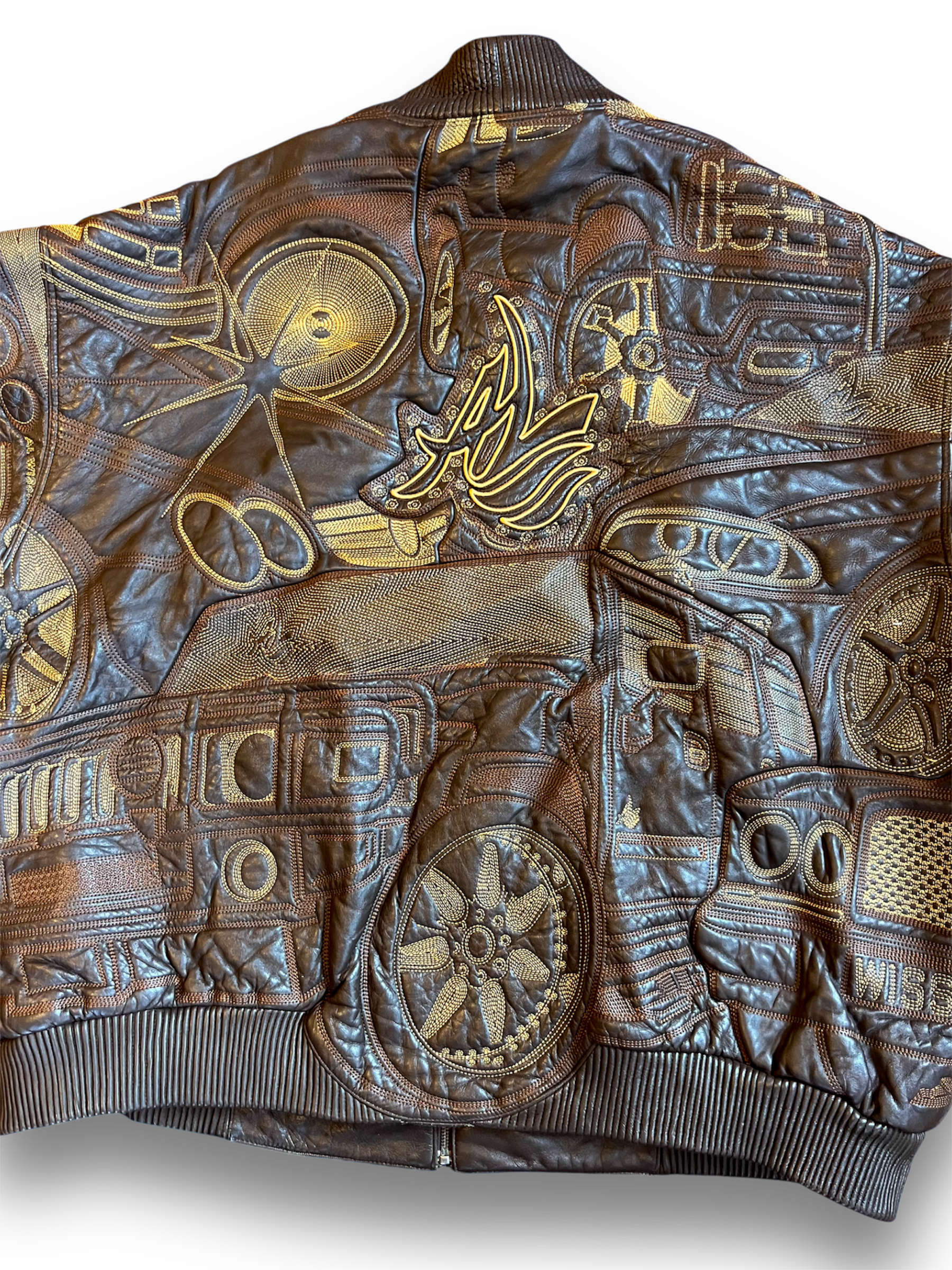 Fully embroidered genuine leather